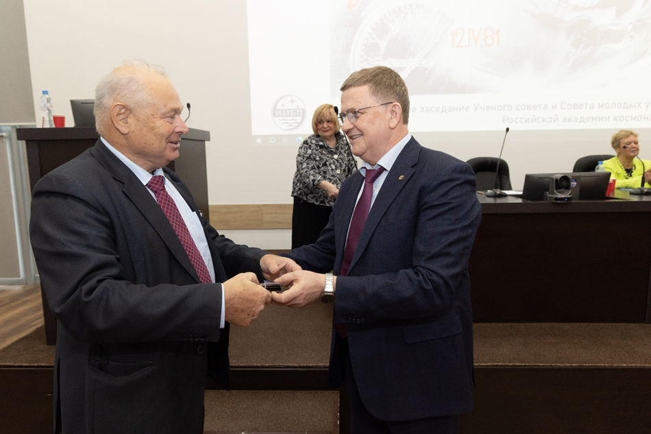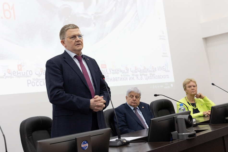 Ученого совета ИМБП РАН, Совета молодых ученых и специалистов Российской академии наук и Российской академии космонавтики им. К.Э. Циолковского. На заседании выступил Соловьев В.А.,