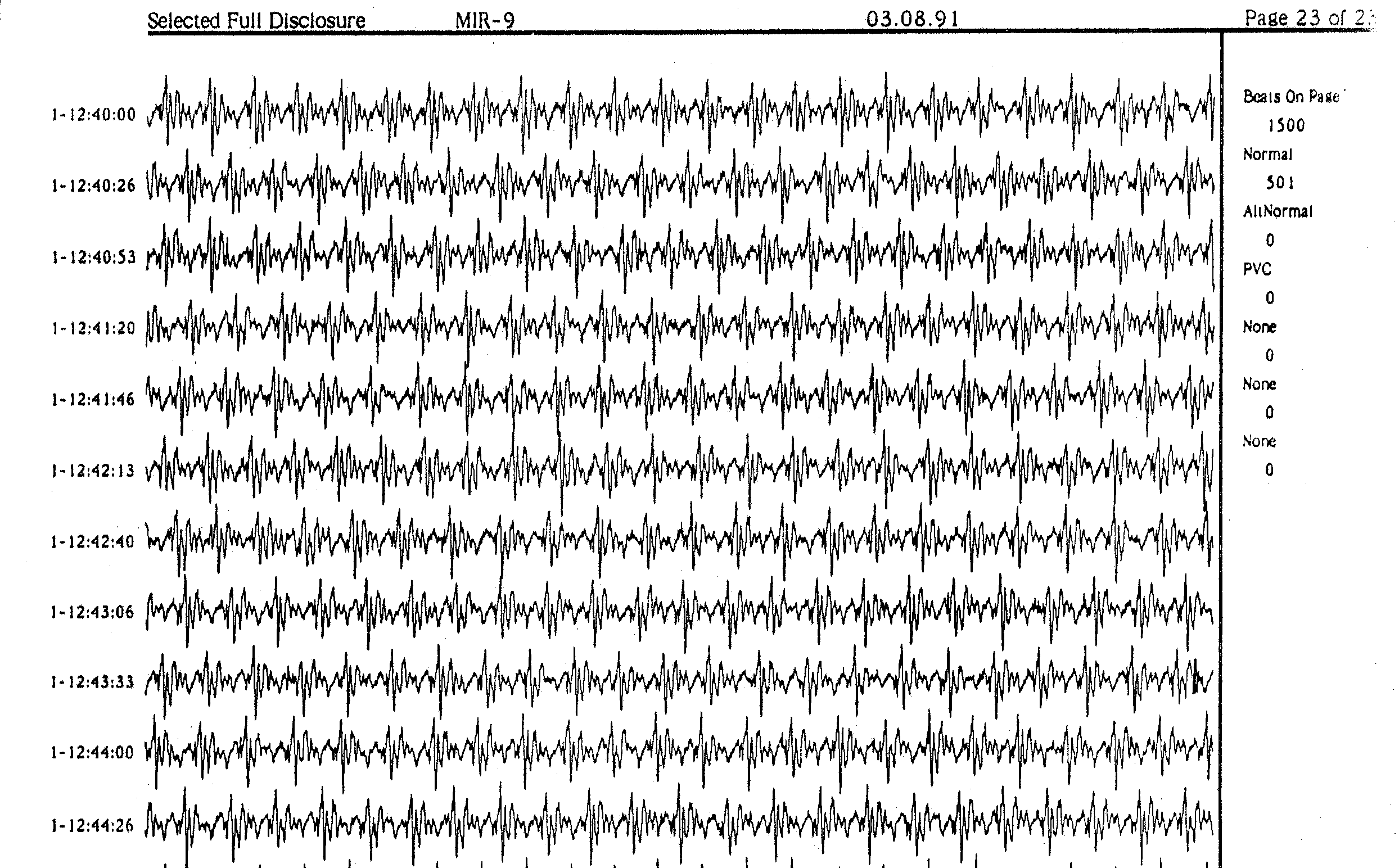 Рис. 12. Образец бесконтактной записи баллистокардиограммы, зарегистрированной во время сна на борту орбитальной станции МИР