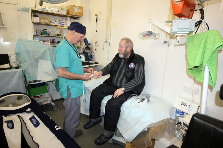 ему помогают его боевые братья по южному полюсу. Врач постоянно на связи с сотрудниками ГНЦ РФ ИМБП РАН по вопросам науки.