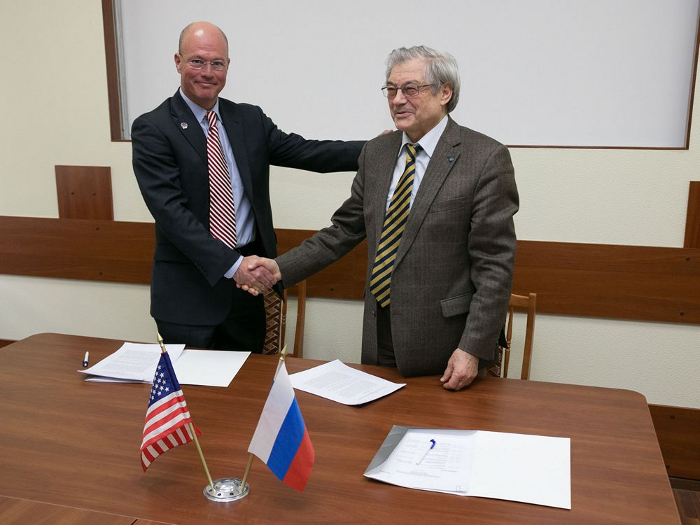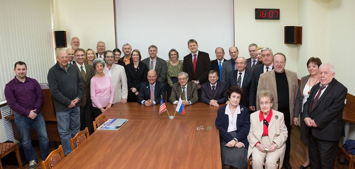16-18 апреля в Государственном научном центре РФ Институте медико-биологических проблем РАН, Москва, прошло 16-е совещание российско-американской рабочей группы по исследованиям в области космической биомедицины и биологии. В работе совещания приняли участие специалисты НАСА, Российской Академии Наук, Роскосмоса, ГНЦ РФ ИМБП РАН, Центра подготовки космонавтов им. Ю.А. Гагарина ЦНИИМаш, Объединенного института ядерных исследований (г. Дубна). Были обсуждены результаты российских и американских исследований в 2013 году на МКС и предварительные результаты экспериментов по проекту "БИОН-М" №1, а также ближайшие перспективы: предварительные программы исследований в годовом российско-американском полете на МКС в 2015 г., совместные исследования с использованием наземных баз и др. Встреча прошла в деловой и доброжелательной обстановке.