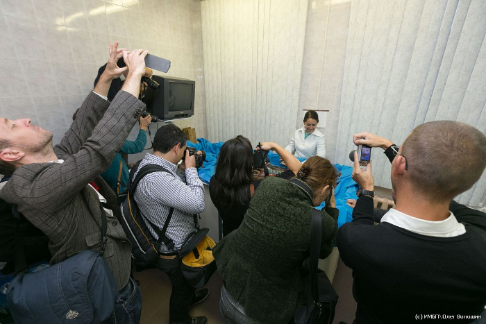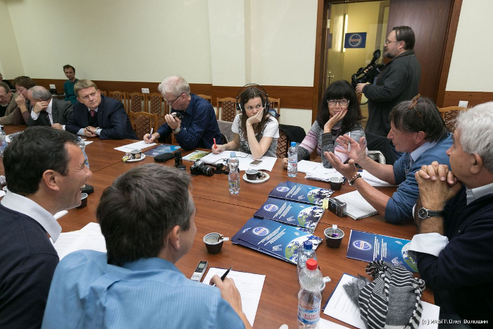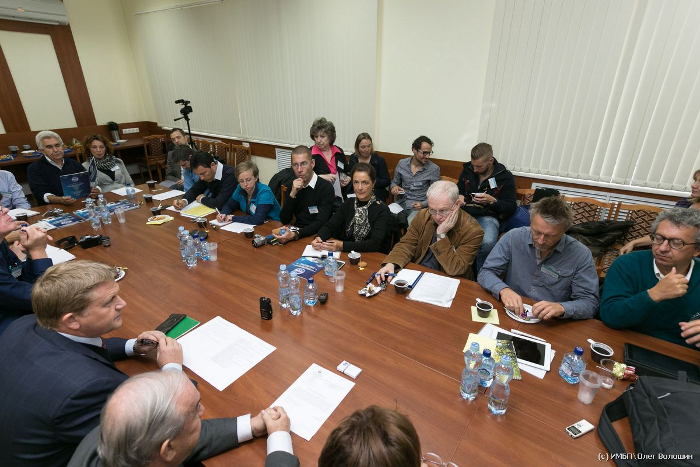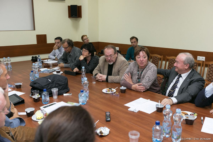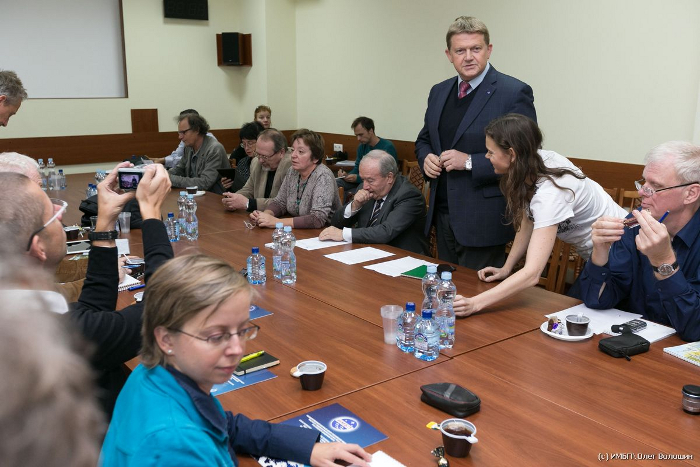 24 сентября 2014 г. в ИМБП прошла встреча с представителями европейских СМИ – членами Европейского союза ассоциаций научных журналистов. Во встрече приняло участие 26 иностранных участников из 11 стран – Германии, Италии, Словении, Болгарии, Швеции, Финляндии, Испании, Дании, Голландии, Австрии и Франции. С приветственной речью перед журналистами выступил первый зам. директора Орлов О.И. Во встрече также приняли участие Белаковский М.С., Буравкова Л.Б., Сычев В.Н., Демин Е.П. и Козловская И.Б. За время визита журналисты посетили несколько стендов и лабораторий Института, где смогли ознакомится с основными направлениями деятельности ИМБП. Встреча прошла в теплой дружественной обстановке.