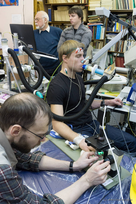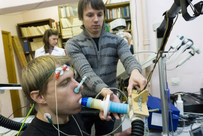В ноябре – декабре 2014 года в отделе «Физиология человека в экстремальных условиях» на стендовой базе лаборатории «Физиология и биомеханики кардиореспираторной системы» успешно проведены экспериментальные исследования «Изучение влияния на организм человека дыхания под отрицательным давлением и его взаимосвязей с регуляцией дыхания». Эти исследования были выполнены в рамках проекта «Влияние дыхательных модуляций внутригрудного давления и объема легких на сердечно-сосудистую систему человека» программы фундаментальных исследований отделения физиологии и фундаментальной медицины РАН «Интегративная физиология» и проекта «Модифицированный аппаратно-программный комплекс для определения параметров системы регуляции дыхания человека» программы Президиума РАН «Фундаментальные науки - медицине».