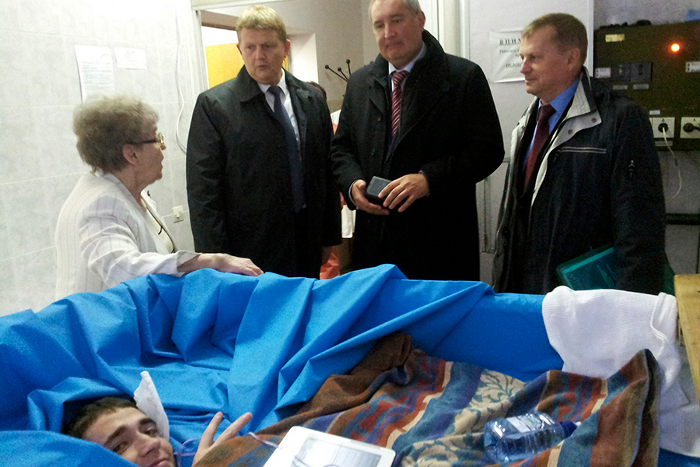 6 октября 2014г. Институт медико-биологических проблем РАН с рабочим визитом посетил Заместитель Председателя Правительства Российской Федерации Д.О. Рогозин. Дмитрий Олегович посетил Центр управления медицинским обеспечением космических объектов (ЦУМОКО), лабораторию «Физиология ускорений и искусственной силы тяжести», наземный экспериментальный медико-технический комплекс (НЭК), Центр Физиологических испытаний, а также выставку инновационных достижений космической медицины и биологии. В завершении визита Дмитрий Олегович поздравил коллектив с Международным Днем врача.