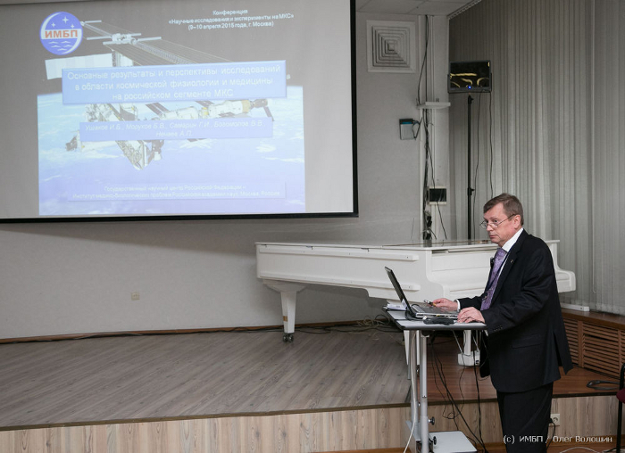 С докладом «Основные результаты и перспективы исследований в области космической физиологии и медицины на российском сегменте МКС» выступил директор Института академик Ушаков И.Б.