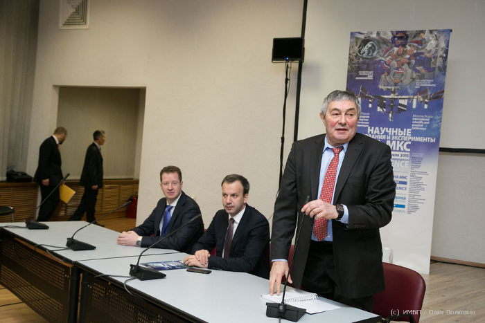 С первым докладом выступил Владимир Соловьёв, председатель Координационного научно-технического совета Роскосмоса по программам научно-прикладных исследований на пилотируемых космических комплексах (КНТС), напомнив участникам конференции об истории и современном состоянии научных исследований на орбитальных станциях. Также он упомянул о готовящемся к запуску исследовательском модуле МЛМ и назвал ряд новых экспериментов, которые планируется проводить с его помощью.