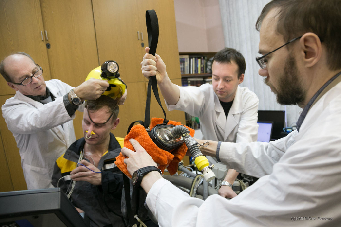 В испытаниях приняли участие испытатели из ИМБП, профессиональные шахтеры, а также руководители СУЭК (Сибирской угольной энергетической компании) В.Н. Костеренко и И.В. Шипилов. В качестве наблюдателей присутствовали на испытаниях главный конструктор ОАО «Корпорацией «Росхимзащита» С.В. Гудков и врач из «Горного» университета профессор В.В Грызунов, отметившие высокий профессиональный уровень сотрудников Института, сочетающийся с качественным оснащением стендов лабораторий.