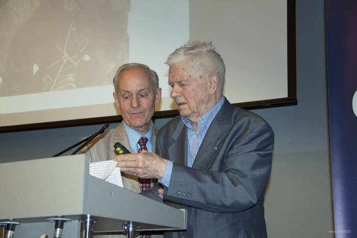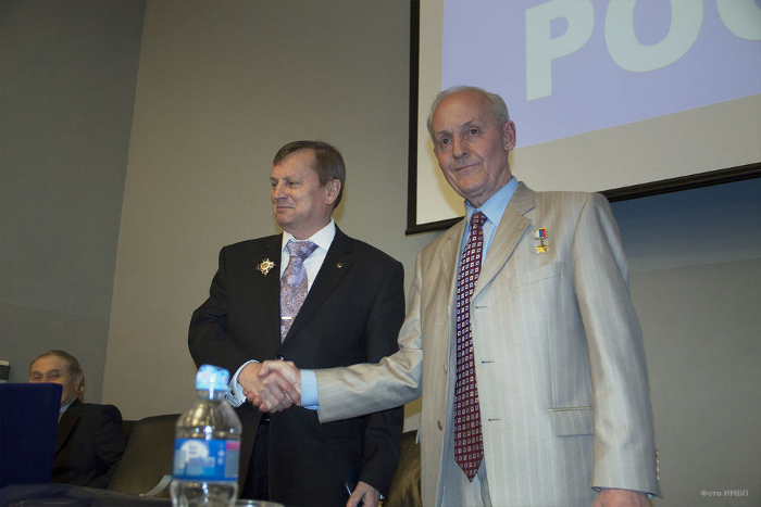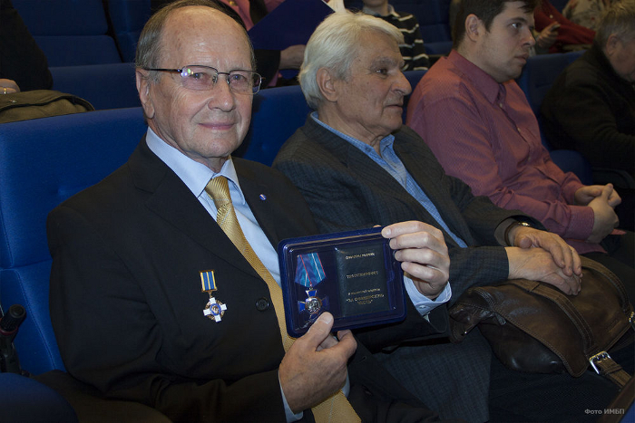 В завершении мероприятия Герой России, испытатель ИМБП С.И. Нефедов по поручению Общероссийской организации «Офицеры России» вручил ветеранам космонавтики ордена и медали «За офицерскую честь».