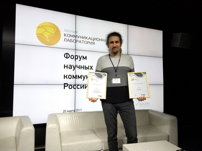 20 марта 2017 года, в период проведения Форума научных коммуникаторов России состоялось вручение премий «Коммуникационной лаборатории». Это первая в России профессиональная награда для специалистов в сфере научных коммуникаций, которая вручается в рамках одноименного проекта РВК (Российской венчурной компании) с целью сформировать стандарты качества в интенсивно развивающейся профессиональной области.