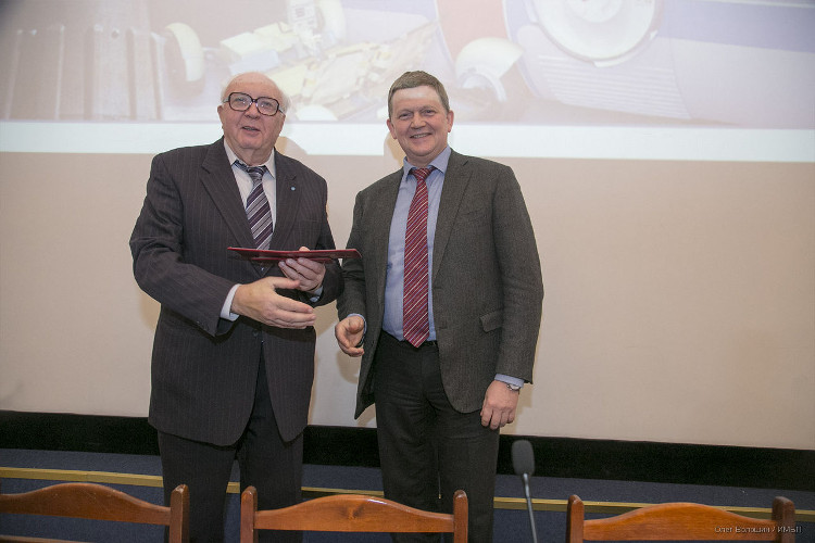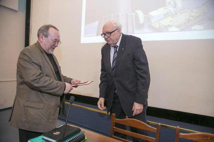 На совместном заседании ученого совета Президент РАКЦ Бармин И.В. торжественно вручил диплом действительного члена Российской академии космонавтики им. К.Э. Циолковского директору ИМБП Орлову О.И., дипломы членов-корреспондентов РАКЦ ученому секретарю ИМБП Левинских М.А., заместителю директора по науке ИМБП Сычеву В.Н. и заведующему отделом ИМБП Суворову А.В.