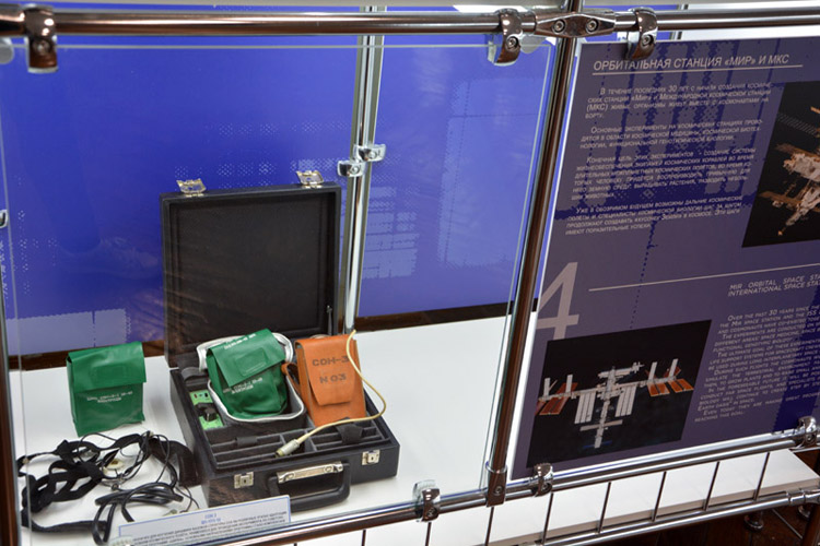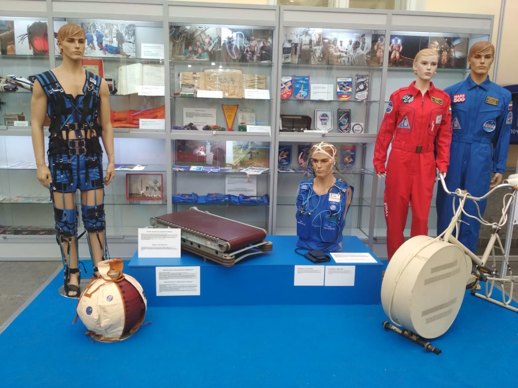которые выходили в космос. Очень много представлено и настоящих космических изделий, таких как скафандры «Орлан» и «Сокол». Более 40 экспонатов для выставки предоставили специалисты из Института медико-биологических проблем (ИМБП) РАН -