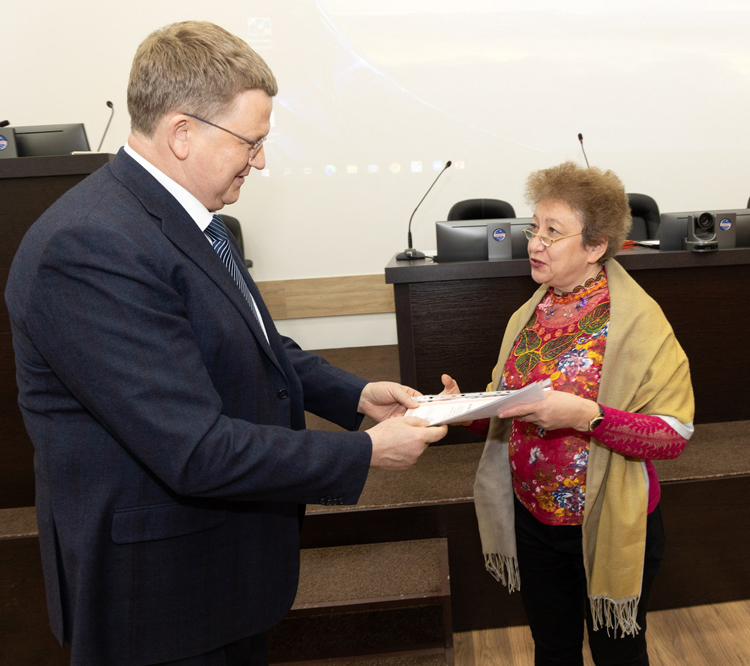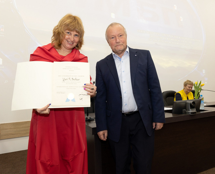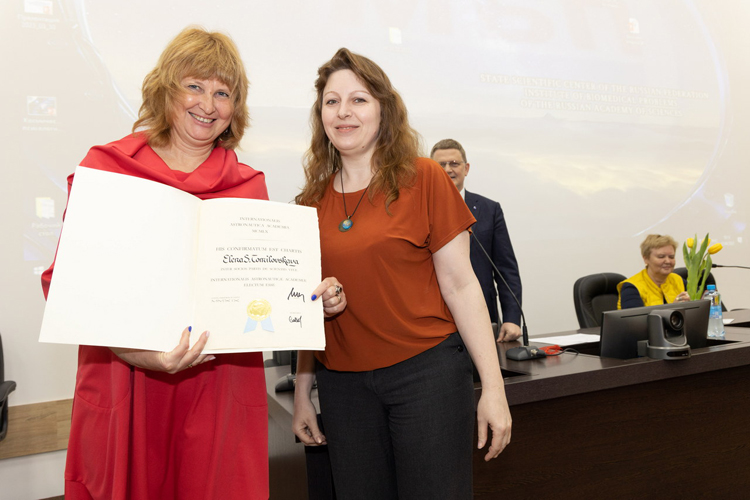 Член правления Международной академии астронавтики (IAA) д.м.н., профессор Елена Валентиновна Фомина от имени академии поздравила с избранием действительными членами академии IAA заведующего отделом сенсомоторной физиологии и профилактики,