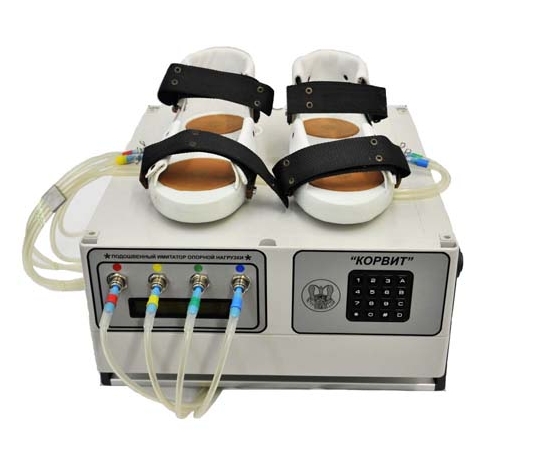 У половины испытателей в ходе иммерсии будет применяться механическая стимуляция опорных зон стоп в режиме естественных локомоций. Для стимуляции будет использоваться прибор «КОРВИТ» (ООО «ВИТ», Россия) (Рис.2).