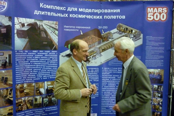 18.09.2012 года в Государственном музее истории космонавтики им. К.Э. Циолковского (г. Калуга) состоялась торжественная церемония открытия выставки «С человеком на борту», где Институт медико-биологических проблем РАН представил передвижную выставку достижений ИМБП в честь 50-летия образования Института. В церемонии открытия с приветственными словами к гостям и участникам выставки обратились прославленный советский и Российский космонавт В.М. Афанасьев, директор ГМИК им. К.Э. Циолковского Е.Н. Кузин, академик РАН М.Я. Маров. Выставочный стенд ИМБП вызвал оживленный интерес, как у посетителей музея, так и у журналистов местных газет и изданий. Было заданно множество вопросов по тематике выставки, по особенностям деятельности и работы Института. Несомненно, участие в таких мероприятиях несет в себе просветительский и образовательный характер и в полной мере соответствует целям пропаганды отечественной космонавтики и деятельности Института. Выставка продлиться в течение месяца в период с 18 сентября до 18 октября 2012 года.