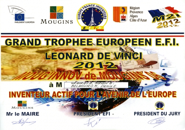 С 28 по 30 сентября 2012 года в г. Мужен (Франция, Лазурный берег) проходил Европейский салон изобретений и инноваций «МуженИннов», организованный EFI (Ассоциация «Европа-Франция-Изобретатели»).