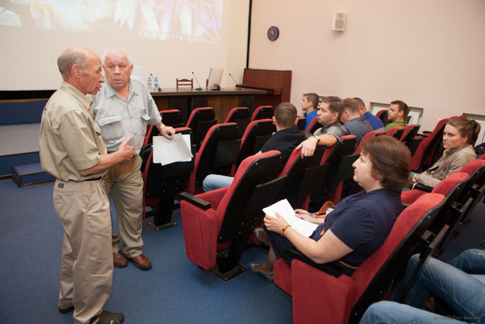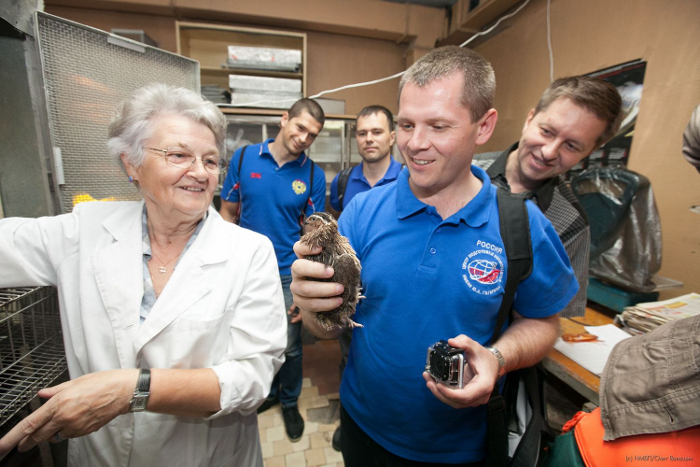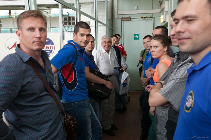 В соответствии с обращением ФГБУ НИИ ЦПК имени Ю.А. Гагарина 19 июня 2013 года в ГНЦ РФ-ИМБП РАН побывала группа кандидатов в космонавты-испытатели набора 2012 года и космонавтов набора 2010 года. Целью посещения было проведение на базе Института занятия в рамках программы общекосмической подготовки с посещением лабораторий для знакомства с научным оборудованием и объектами биологических исследований. Темы занятия: ознакомление с текущими и перспективными медико-биологическими экспериментами по биологии развития, биологии растений, клеточной биологии; со средствами радиационного контроля и медицинскими исследованиями на МКС. В занятиях приняли участие кандидаты в космонавты: Блинов Олег Владимирович, Дубров Павел Валерьевич, Игнатов Игнат Николаевич, Кикина Анна Юрьевна, Корсаков Сергей Владимирович, Петелин Дмитрий Александрович, Федяев Андрей Валерьевич, Чуб Николай Александрович и космонавты-испытатели: Бабкин Андрей Николаевич, Вагнер Иван Викторович, Кудь-Сверчков Сергей Владимирович, Матвеев Денис Владимирович, Прокопьев Сергей Валерьевич. Ответственными лицами за организацию занятия были Ольга Александровна Кутепова (НИИ ЦПК) и Георгий Иванович Самарин (ИМБП) Открыл встречу директор Института академик РАМН, член-корреспондент РАН Игорь Борисович Ушаков, рассказавший об истории Института, основных научных направлениях деятельности и стендовой базе. С краткими сообщениями выступили ведущие специалисты Института: кандидат физико-математических наук Петров Владислав Михайлович (радиационная безопасность и дозиметрический контроль), кандидат биологических наук Григорьева Ольга Владимировна (Биология клетки), кандидат биологических наук Поддубко Светлана Викторовна (Микробиологические исследования), кандидат биологических наук Гурьева Тамара Сергеевна (Исследования на птицах и млекопитающих животных), доктор технических наук Беркович Юлий Александрович (Космические оранжереи), профессор, доктор биологических наук Горгиладзе Гиви Ильич (Изучение вестибулярной функции и регенерации). Кандидаты в космонавты и космонавты посетили лаборатории микробиологии среды обитания и противомикробной защиты, биологических систем жизнеобеспечения человека, клеточной биологии в которых они ознакомились с научным оборудованием, используемом при проведении наземных и полетных исследований и экспериментов, с биообъектами (перепела, культуры клеток, растениями). В отделе стендовых испытаний и исследований (руководитель Демин Евгений Павлович) участники занятий ознакомились с экспериментальными установками, в которых были проведены эксперименты с изоляцией («Марс-500»), доктор медицинских наук Гущин Вадим Игоревич рассказал о полетных психофизиологических исследованиях и ознакомил со стендом виртуальной реальности пребывания человека на поверхности Марса. В отделе сенсомоторной физиологии профилактики профессор, доктор биологических наук Фомина Елена Валентиновна продемонстрировала бортовые тренажеры и рассказала о внедрениях в практическое здравоохранение средств и методов профилактики неблагоприятного воздействия на организм факторов космического полета. По завершения занятия кандидатами в космонавты и космонавтами была высказана искренняя благодарность всем ученым Института принимавшим участ