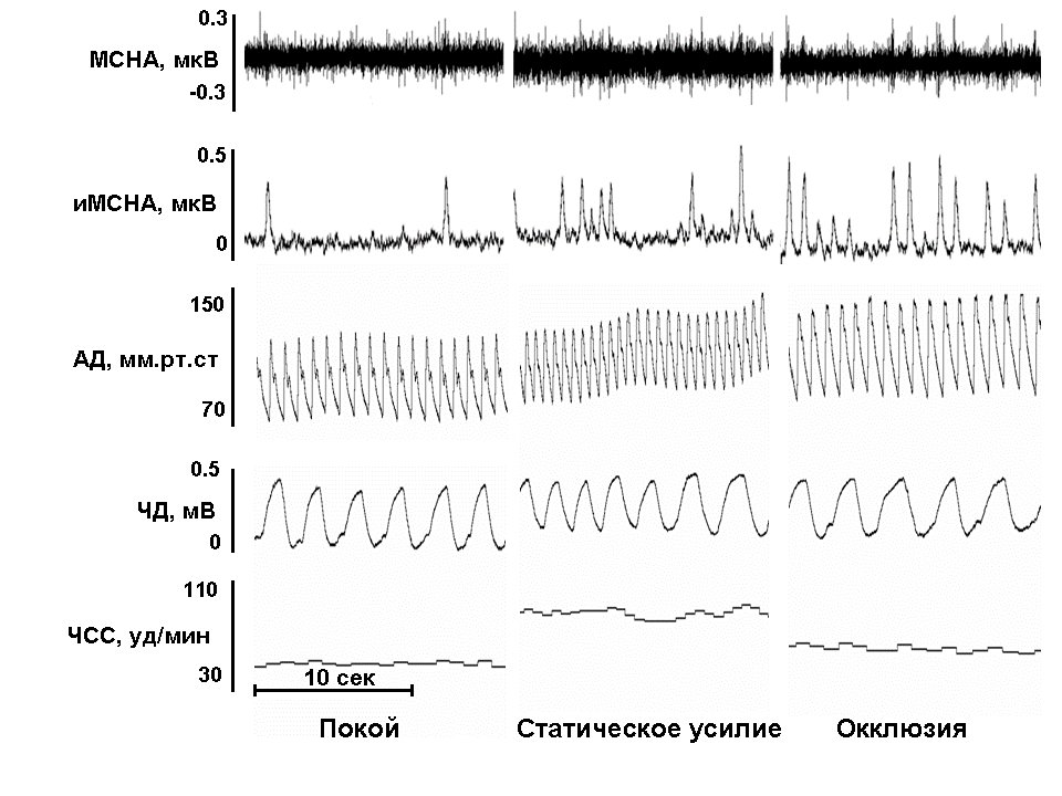 - микронейрографический метод регистрации симпатической активности в периферическом нерве человека. В малоберцовый нерв через кожу вводится тонкий вольфрамовый микроэлектрод, кончик которого позиционируется вблизи от постганглионарных симпатических волокон. Разрядная активность симпатических волокон регистрируется одновременно с показателями, характеризующими функционирование сердечно-сосудистой и дыхательной систем. Методика используется для исследования симпатической регуляции сосудистого тонуса при различных режимах мышечной работы, эффектов тренировки различных мышечных групп, а также гипокинезии и гипогравитации;