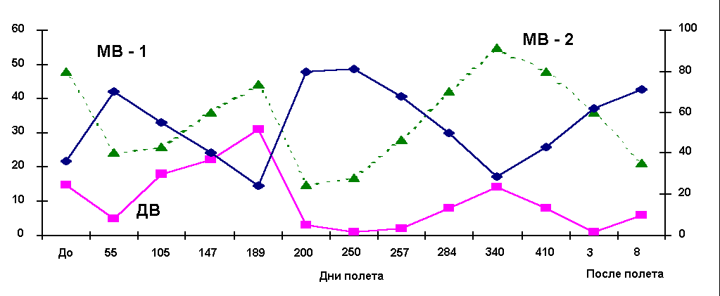 Рис.10. Результаты исследования двух членов экипажа МКС