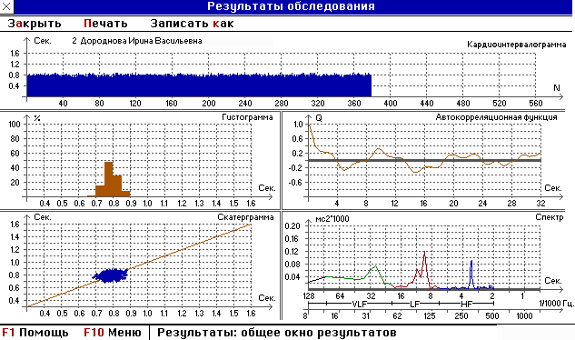 Рис. 4. Образцы графиков, получаемых в результате анализа вариабельности сердечного ритма