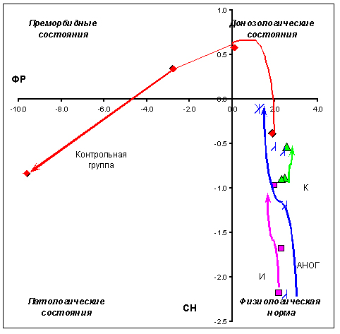 Исследование переходных состояний между здоровьем и болезнью означает изучение самого процесса такого перехода, знание тех этапов, стадий, фаз, которые, как ступеньки, ведут от здоровья к болезни. Переход от нормального физиологического состояния болезненному, патологическому - это переход от одного качественного состояния к другому, или макроскачек. Но в рамках этого макроскачка может быть несколько качественных превращений в виде микроскачков (Г.И. Царегородцев, 1966). Применительно к этому уместно привести крылатую фразу В. Гете “Говорят, будто между двумя противоположными мнениями лежит истина. Ни в коем случае! Между ними лежит проблема”. Проблема, которую мы обсуждаем, относится к наиболее сложному объекту природы - организму человека, функциональное состояние которого формируется в результате его взаимодействия с окружающей средой, т.е. является результатом процесса адаптации организма к условиям среды. И.М. Сеченов писал: “Организм без внешней среды, поддерживающей его существование, невозможен, поэтому в научное определение организма должна входить и среда, влияющая на него”. По представлениям И.П. Павлова “…животный организм как система существует среди окружающей природы только благодаря непрерывному уравновешиванию этой системы с внешней средой, т.е. благодаря определенным реакциям живой системы на падающие на нее раздражения”. Таким образом, переходные между здоровьем и болезнью так называемые донозологические состояния следует рассматривать как процесс последовательного перехода организма через разные степени адаптации к условиям среды, как качественные микроскачки, предшествующие макроскачку.