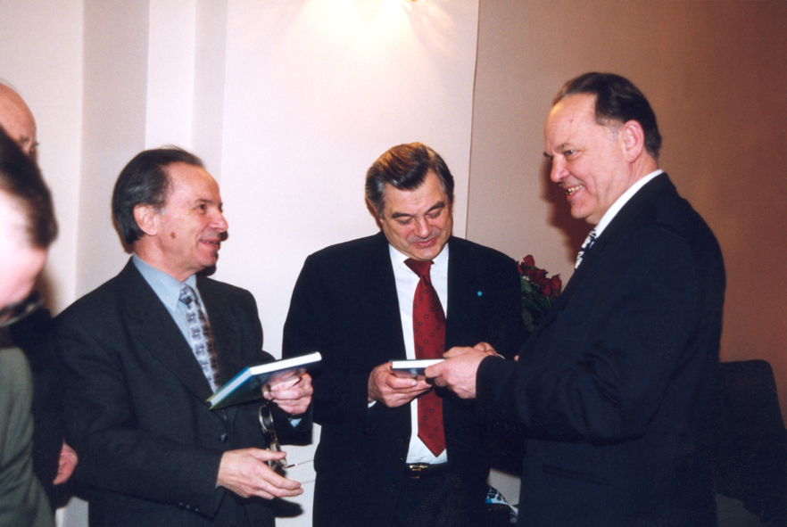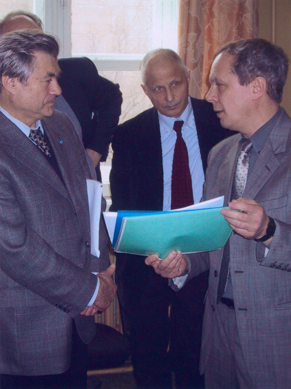В Президиуме Российской академии наук. Слева-направо: академики Ю.В.Наточин, А.И.Григорьев, Р.В.Петров (2000) В Институте молекулярной биологии РАН с академиками А.Д.Мирзабековым и А.А.Макаровым (2002)