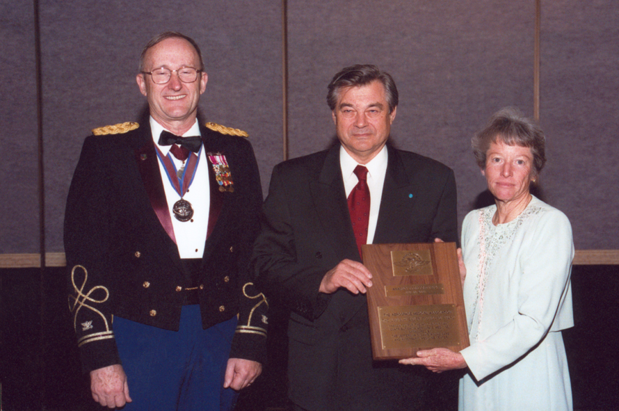 Вручение А.И.Григорьеву премии им. Адольфа фон Бауэра Американской авиакосмической Ассоциации. Цинциннати, США (2001) А.И.Григорьев поздравляет акад. О.Г.Газенко с юбилеем (1998)