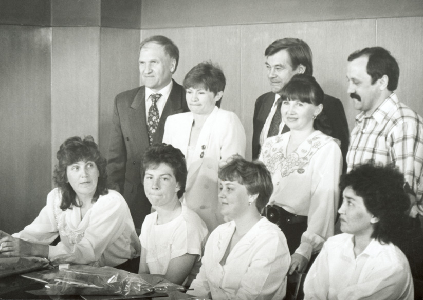Медицинское обследование врача-космонавта Г.С.Арзамазова проводят А.И.Григорьев и О.Г.Газенко (1992) А.И.Григорьев и космонавты В.М.Афанасьев и Ю.В.Усачев на встрече с женщинами - участницами эксперимента со 120-суточной антиортостатической гипокинезией (1994)
